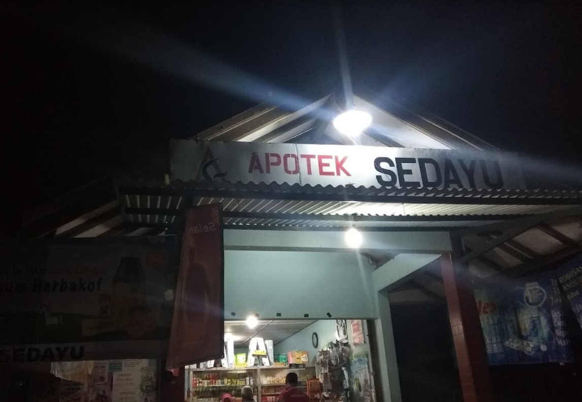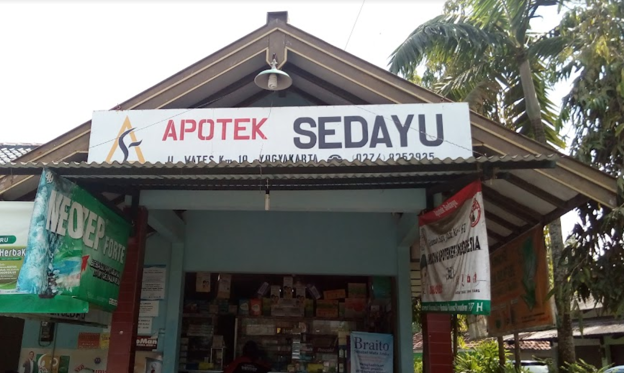 AdApotek agak masuk ke gang dikit, bertempat di kiri jalan dari jalan raya, depannya angkringan. Disini menyediakan berbagai kebutuhan obat luar maupun dalam. Belum lama ini sudah ada saingan K-24 yang mana jaraknya nggak jauh dari apotik Sedayu, tepatnya depan Polsek Pedes