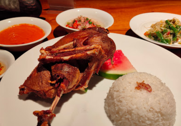 Bagi kamu yang sedang berada di Pulau Bali, Bebek Bengil Ubud harus menjadi tempat makan yang wajib didatangi. Kulineran ditemani hamparan sawah hijau nan indah bakal bikin selera makan meningkat. Sajian menu bebek goreng sebagai andalannya dilengkapi dengan sambal matah atau sambal merah dan sayur urap membuat cita rasa yang pas berpadu di mulut. Ada berbagai varian menu lain yang tak kalah nikmat dan lezatnya. Jangan sampai menyesal ya! Jika kamu tidak mampir ke restoran enak ini.