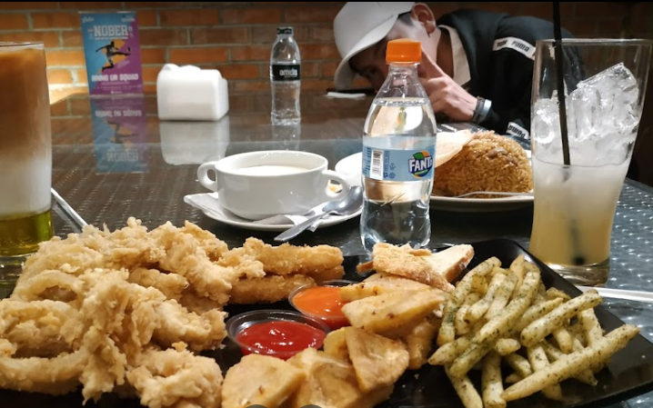 Cafe ini tempatnya terdiri dari dua, memang tempatnya cukup luas dan punya desain interior yang lucu dan suasananya bikin nyaman!Disini juga suka ada live music dan buka 24 jam. Buat nugas juga oke banget kok di sini.