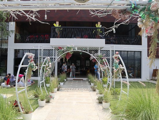 Uniknya, seluruh area Boda Barn didekor dengan hiasan ala wedding party, lengkap dengan altar berhias bunga-bunga di area outdoor. Suguhan panorama Kota Bandung menjadi nilai plus yang ditawarkan di siang hari, kamu bisa menikmatinya dari area indoor melalui jendela kaca besar ataupun langsung di area outdoor sambil merasakan sejuknya udara pegunungan.