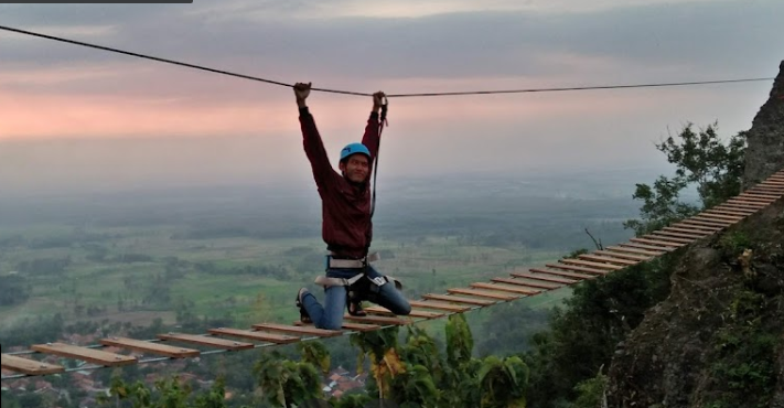 Bukit ini menawarkan pemandangan persawahan, gunung Slamet, hingga kecantikan matahari terbit dan tenggelam. Selain itu, tempat ini memiliki dua wahana ekstrim yakni panjat tebing dan sky bridge yang tentunya sangat disukai para pecinta adrenalin.