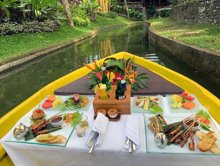 Menikmati makan siang ala piknik menggunakan perahu menyusuri sungai yang dikelilingi pepohonan rimbun bersama pasangan? Ah, sepertinya momen romantis ini adalah impian semua pasangan. Kini, Anda bisa mewujudkan impian romantis tersebut menjadi sebuah kenyataan di Kamandalu Resort Ubud.