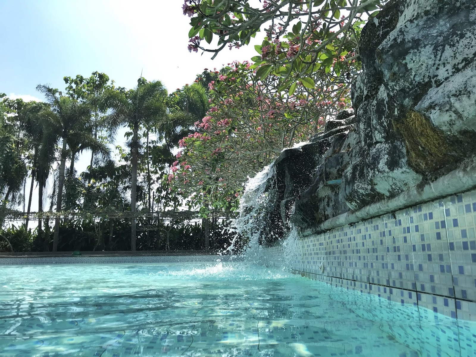 Kolam renang yang ada di tempat ini memiliki konsep yang cukup unik dan menarik. Tentunya semua hal tersebut tidak membosankan untuk Anda kunjungi atau memilih tempat ini sebagai tempat Anda menghabiskan waktu dengan keluarga. Deretan pepohonan yang rindang memenuhi dan mengelilingi tempat ini.