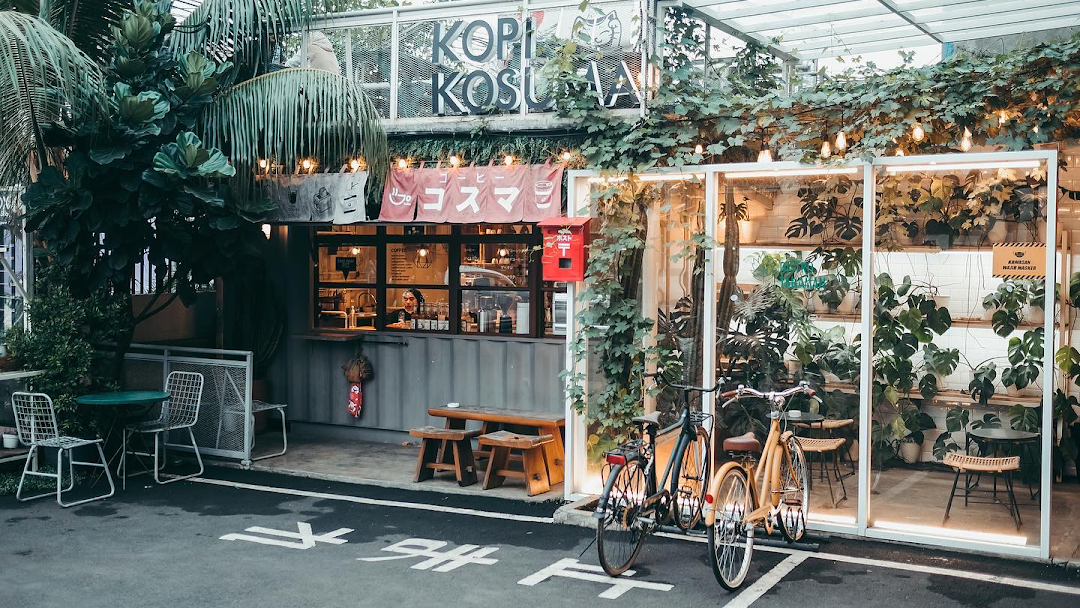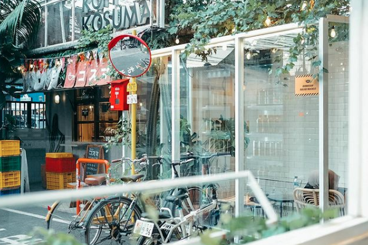 Kedai kopi yang berada di Jalan Condet Raya, Kramat Jati ini seperti kedai kopi yang menyatu dengan alam. Tampak depan kedai dipenuhi dengan tanaman hijau dari segala sisi dan beberapa tulisan Jepang yang membuat kedai ini seperti berada di perkampungan Jepang.