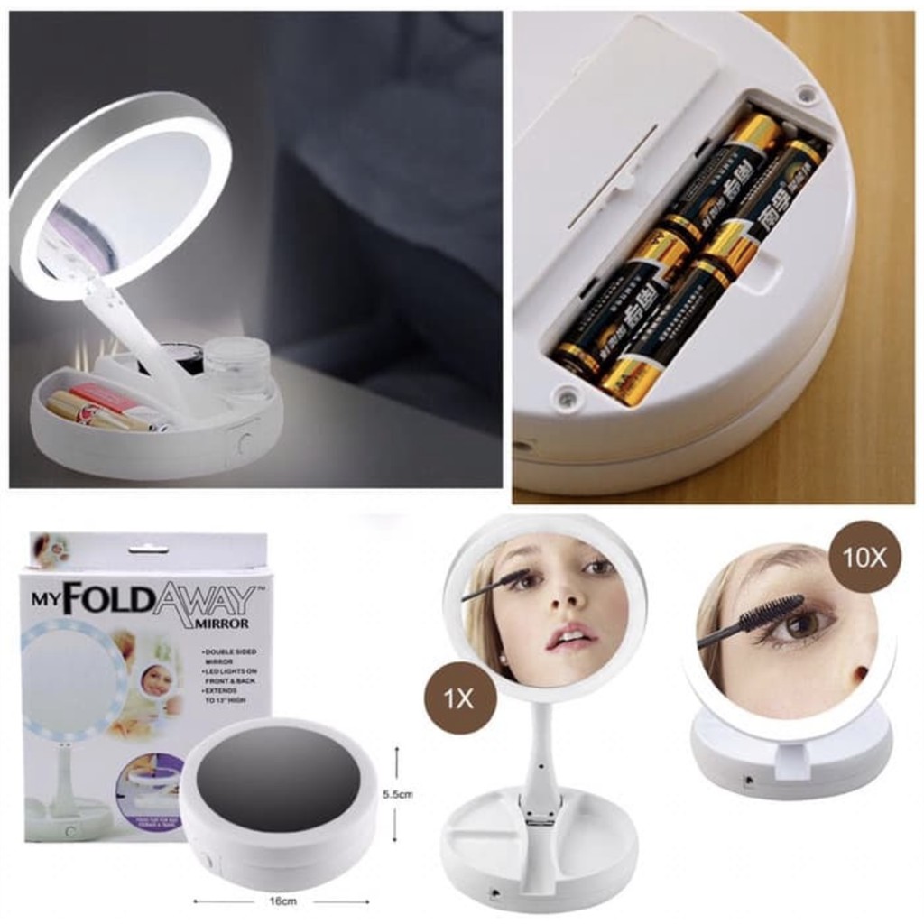 Makeup Lampu Cermin Pembesar Rias Dua sisi Kosmetik Mirror LED Lipat