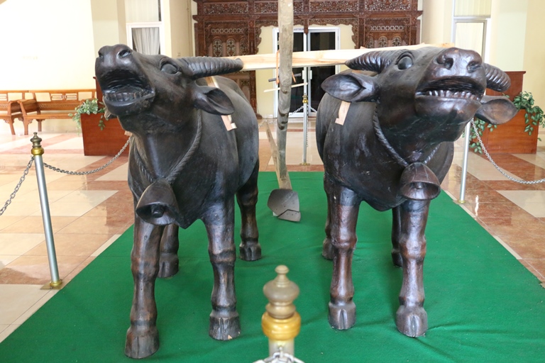 Pada pintu masuk, Anda akan disambut dengan 2 patung sapi yang menyimbolkan kehidupan bertani masyarakat transmigran. Sapi sapi ini dahulu digunakan untuk membajak sawah sebelum mengenal traktor. Terlihat pula patung gajah sebagai fauna khas Lampung.