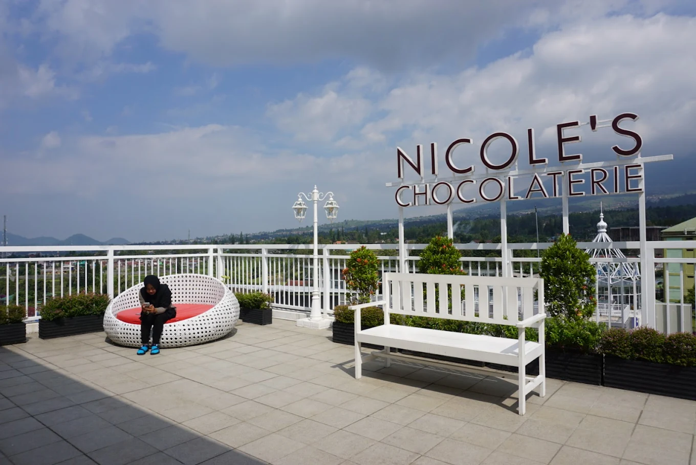 Ingin mengagumi keindahan alam Bogor? Langsung datang saja ke Nicole’s Kitchen & Lounge! Bukan hanya mata saja yang akan dimanjakan, tapi juga lidah dan perut kalianKonsep kafe yang asik dan cozy memungkinkan kalian untuk berlama-lama di sini. Ruangan indoor tidak terkesan seperti dalam ruangan karena tembok kaca yang mengelilingi ruangan akan membuat kalian bisa menyaksikan pemandangan di luar. Belum lagi gazebo dan sofa empuk yang membuat kalian susah beranjak dari tempat duduk.Outdoor-nya juga tidak kalah keren! Di sini, kalian akan dimanjakan oleh atmosfer yang asik dan cozy, asal tidak hujan. Dengan menu makanan ala Western dan Asia, kalian tidak akan rugi deh kalau menikmati Bogor sembari memanjakan perut di sini!