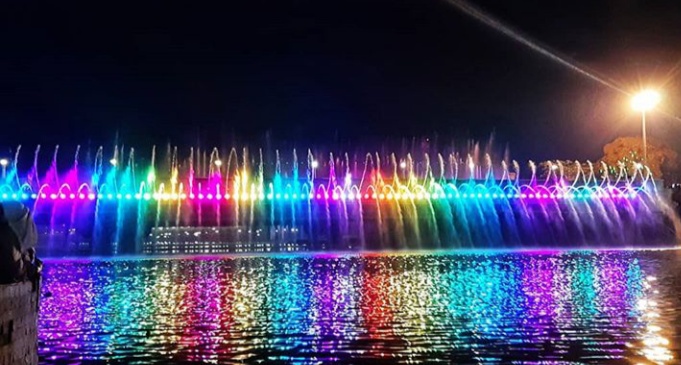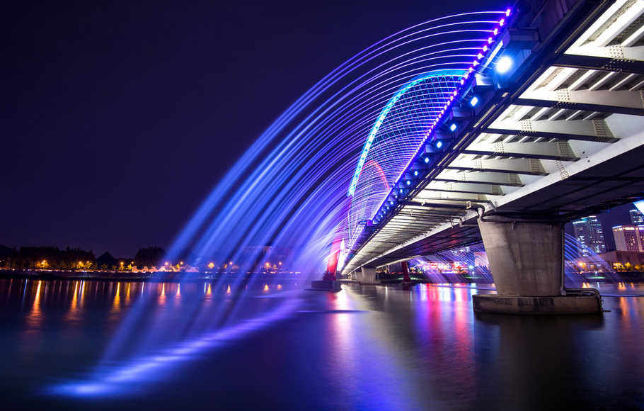 Makin malam, cahaya lampu dari jembatan-jembatan di sana mempercantik suasana. Termasuk dengan adanya Semarang Bridge Fountain dimana air mancur menari warna-warni.