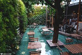 Cafe dengan interior cantik dan makanan lezat di Bandung sebenarnya bukanlah sesuatu yang baru. Namun bagaimana dengan cafe yang meja dan kursinya berada di tengah kolam?One Eighty Coffee menyediakan makanan lezat di atas meja dan kursi yang berdiri di tengah-tengah kolam. Jadi kamu akan menikmati makanan sambil merendam kaki!Selain area kolam, bangunan utama cafe ini terdiri dari dua lantai yang terhubung dengan sebuah tangga spiral, dihiasi dengan konsep dinding bata bergaya industrial yang dipadu dengan interior kayu.