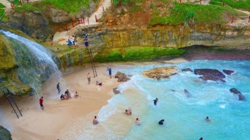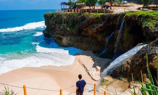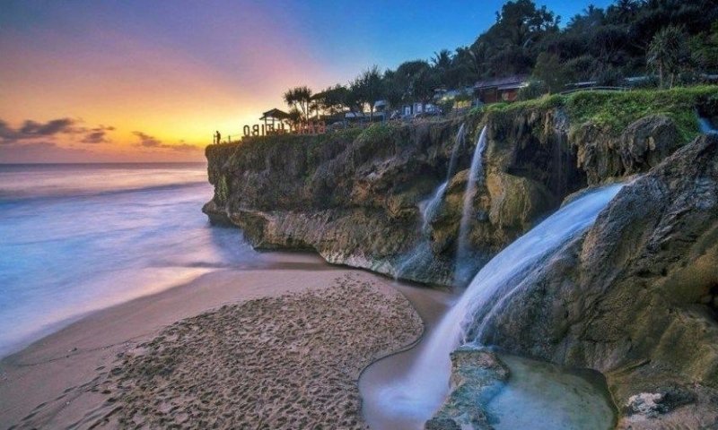 Pantai yang pertama kita bahas ialah Pantai Banyu Tibo, yang menjadi daya tarik dari pantai tersebut ialah kehadiran sebuah air terjun yang mengalirkan airnya langsung ke pantai.Hal tersebutlah yang melatarbelakangi penamaan Banyu Tibo, Banyu yang berarti “air” sedangkan Tibo artinya “jatuh”. Keberadaan air terjun inilah yang menjadi magnet para pengunjung untuk mendatangi Pantai Banyu Tibo.