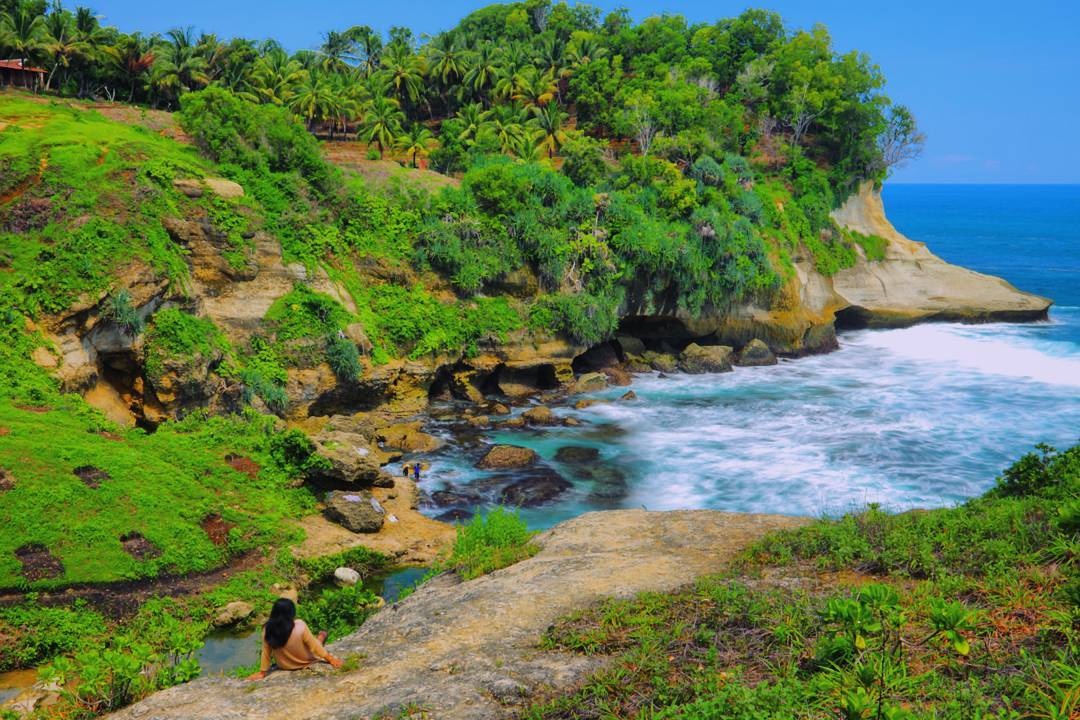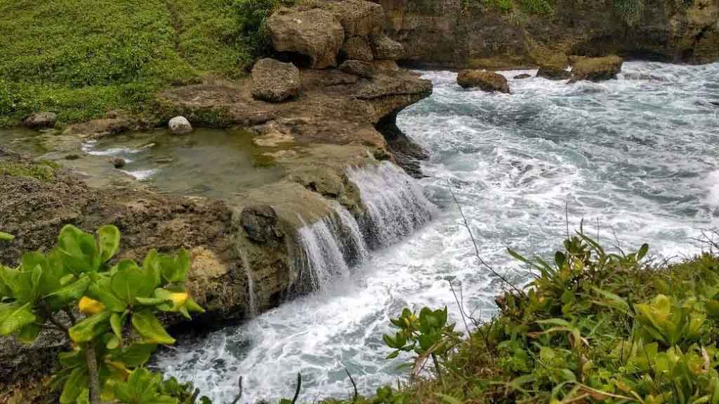 Pantai Ngandul bisa dikatakan sebagai pantai indah yang disembunyikan, kenapa? Karena lokasinya yang berada dibalik tebing dan cukup tersembunyi , Sebenarnya pantai ini bersebelahan dengan Pantai Buyutan tepatnya berada di sebelah timur, namun karena berada di balik tebing hingga jarang dikunjungi oleh wisatawan.Padahal Pantai Ngandul memiliki panorama alam yang sangat menakjubkan, kamu tidak akan menemukan pasir disini, yang ada hanyalah tebing-tebing karang yang indah dihiasi air terjun yang sangat cantik.