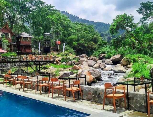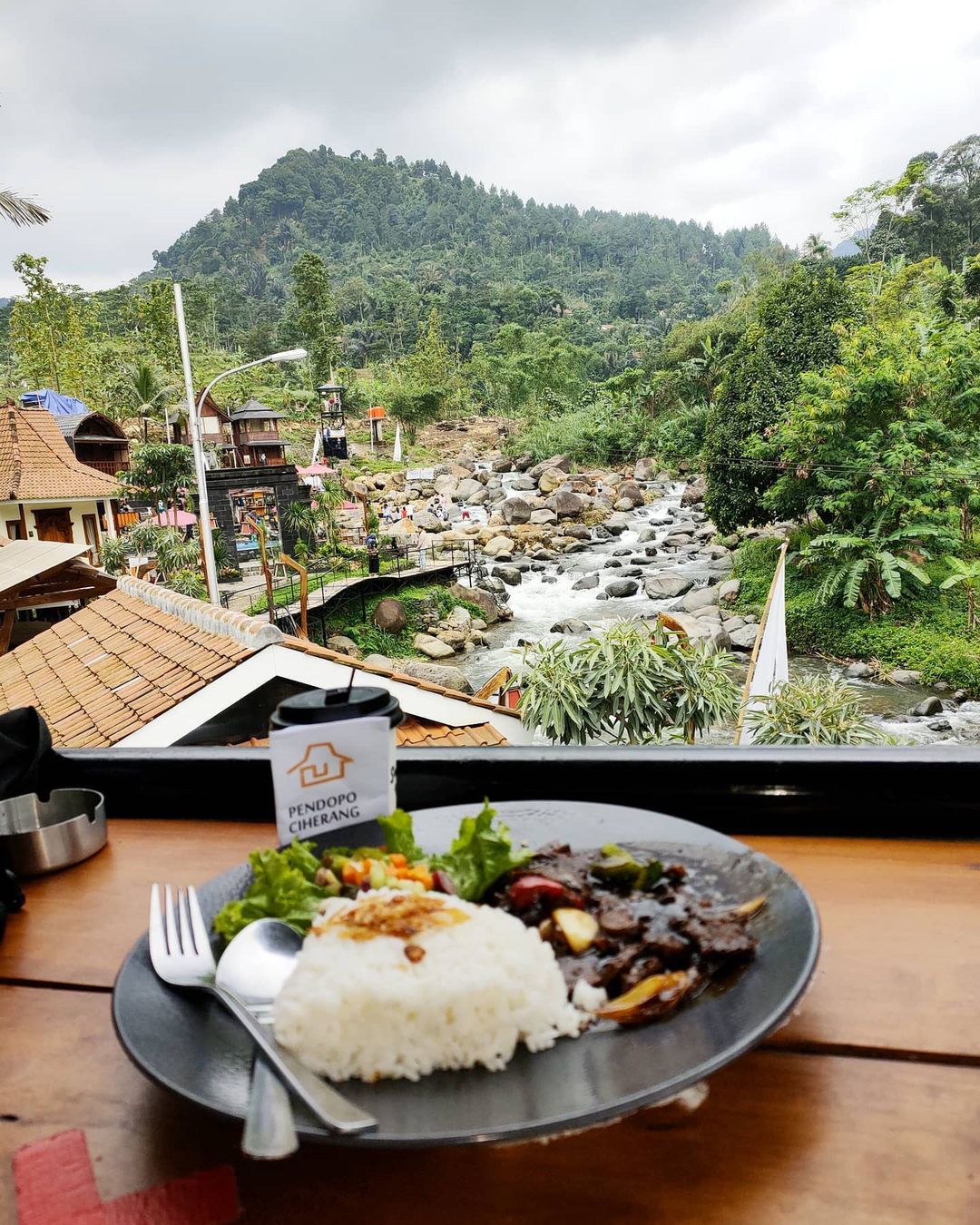 Lokasi yang dekat dengan aliran sungai yang deras membuat resto ini sangat unik, terlebih makanan yang disajikan sangat lezat dan terjangkau.