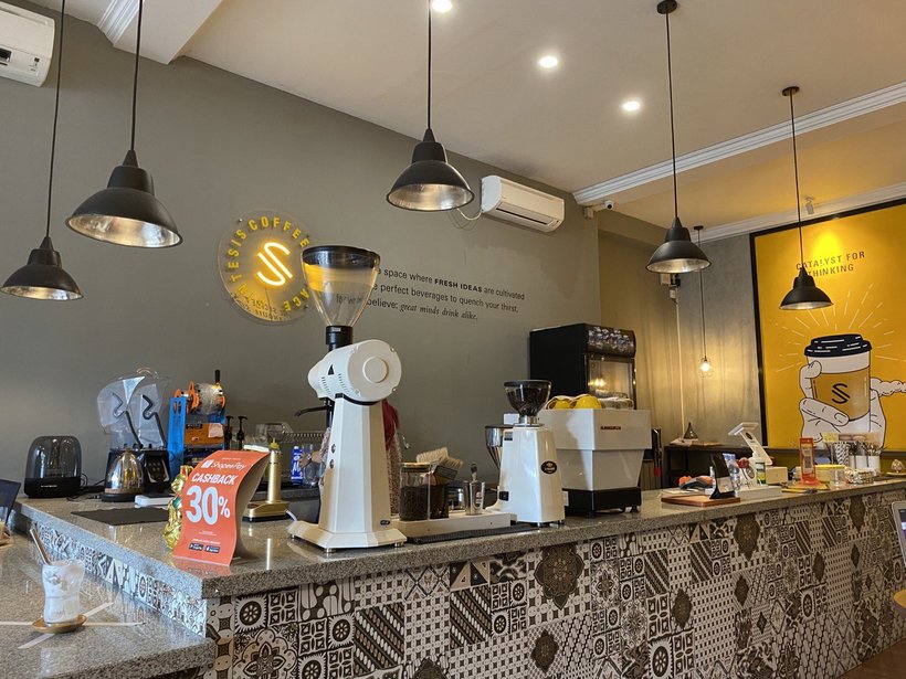 Sintesis Coffee & Space cocok buatmu yang suka bekerja dengan penuh ketenang. Di sini, kamu bisa bekerja dengan fokus sembari menyantap donat dan minum kopi susu.