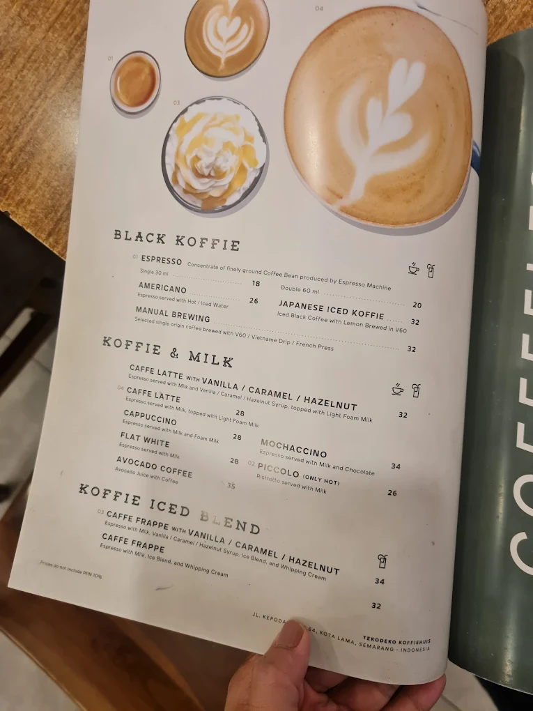 Selain kopi akulturasi tadi, kamu juga dapat menikmati minuman olahan kopi lain lho. Sementara untuk menu makanan, Tekodeko Koffiehuis menawarkan beberapa menu western. Yang menjadi nilai plus kafe ini juga menyediakan area indoor dan outdoor yang ada di lantai 2.